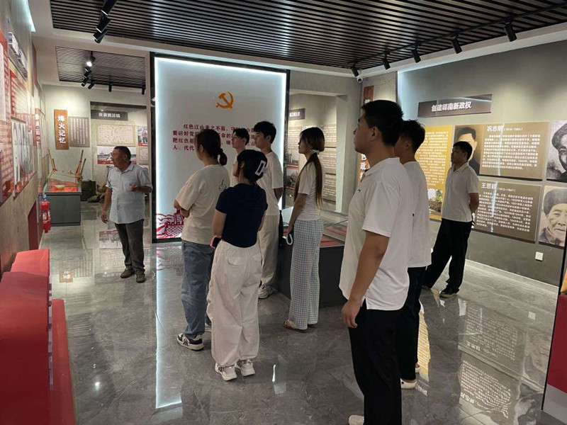 隨后,鎮(zhèn)文化書(shū)院“烽火紅印”志愿者丁繼海同志帶領(lǐng)新入學(xué)大學(xué)生們前往黃丘山套紅色記憶館開(kāi)展紅色教育。通過(guò)參觀珍貴史料、聆聽(tīng)革命故事,學(xué)子們深刻感悟革命先輩的奮斗精神,進(jìn)一步堅(jiān)定了傳承紅色基因、勇?lián)鷷r(shí)代使命的理想信念。